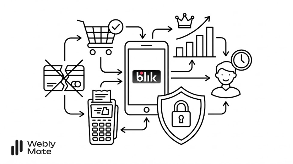 Fakt: BLIK to obecnie najpopularniejsza metoda płatności w polskim e-commerce, wyprzedzająca karty płatnicze. Dla wielu klientów brak logo BLIK na stronie to sygnał ostrzegawczy: “Ten sklep jest przestarzały”.